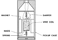 當(dāng)線圈中的導(dǎo)線穿過磁場時,會在線圈的兩端導(dǎo)線之間感應(yīng)出電壓。感應(yīng)電壓是由能量從磁體的磁通場到線圈的傳遞引起的。當(dāng)線圈因振動而被迫通過磁場時,會產(chǎn)生代表振動的電壓信號。