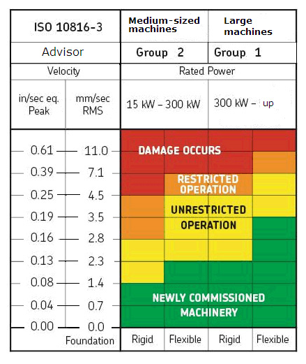 測量振動可能很簡單,例如,購買帶有手持加速度計的振動儀,然后將讀數(shù)與ISO-10816振動嚴(yán)重度表進(jìn)行比較!振動計會將加速度計信號積分到以in / sec或mm / sec為單位的速度。然后可以決定機器是否需要平衡,對準(zhǔn)或什至更換軸承。