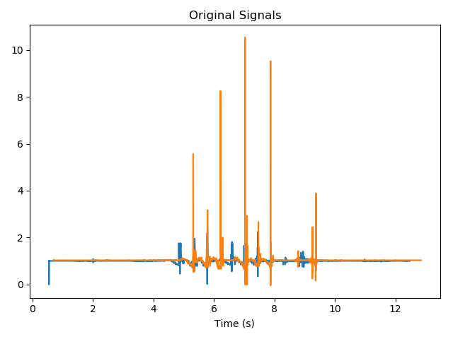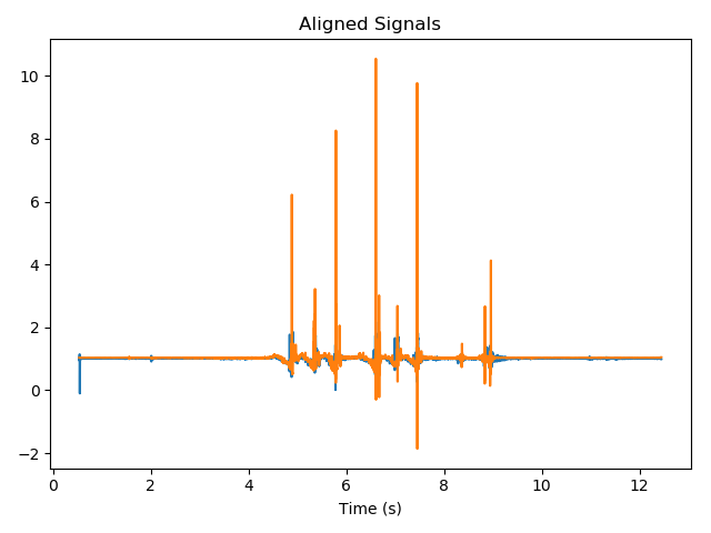 然后根據(jù)最佳的興趣點對(兩個信號中的每個信號之一)對信號進行對齊。在我們的案例中,我們選擇“最佳”表示產(chǎn)生最大歸一化互相關(guān)的信號。
