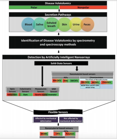 基于納米材料的傳感器檢測VOC以識別疾病的示意圖。圖片由《 小日記》提供