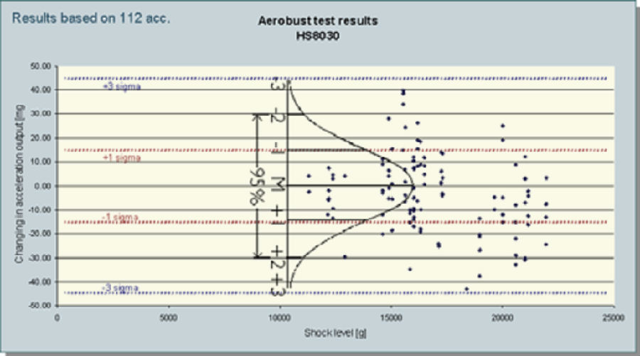 對(duì)加速度器最終的考驗(yàn)是結(jié)合沙地軟著陸的155毫米榴彈實(shí)地發(fā)射測(cè)試。安裝在IMU的加速度計(jì)能成功承受住11’800g到19’500g的沖擊力。對(duì)發(fā)射過(guò)程中最高沖擊力,加速度傳感器表現(xiàn)出良好的耐受性和極小的偏離。