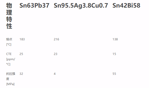 Sn63Pb37 是電子和微電子領(lǐng)域標(biāo)準(zhǔn)化生產(chǎn)時(shí)主要使用的焊接材料。就潤(rùn)濕性、成本,熱傳導(dǎo)性和電傳導(dǎo)性而言,這種合金是完美的,但是對(duì)于封裝引起的應(yīng)力方面它是有局限性的。此外,歐共體對(duì)于在微電子領(lǐng)域全面取消使用鉛(Pb)已經(jīng)確定了日期(2006年7月)。因此,提出了以下兩種替代的材料。它們都具有25 ppm /°C以下的熱膨脹系數(shù)(CTE),并且是可能的解決方案。