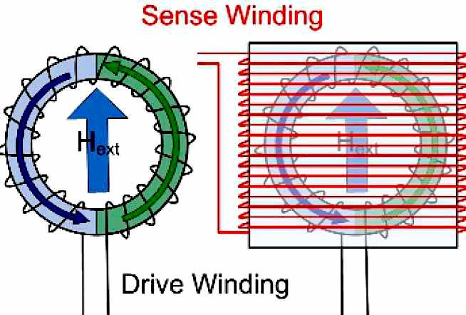 磁通門:由磁環(huán)芯和至少兩個(gè)線圈繞組組成:驅(qū)動(dòng)繞組和感應(yīng)繞組