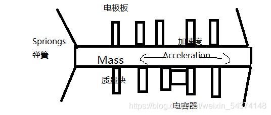如圖中的模型, 一個質量塊兩端通過彈簧進行固定。在沒有加速度的情況下,彈簧不會發(fā)生形變,質量塊靜止。當產(chǎn)生加速度時,彈簧發(fā)生形變,質量塊的位置會發(fā)生變化。 彈簧的形變量隨著加速度的增大而增大。在彈簧的勁度系統(tǒng) k 和質量塊的質量 m已知的情況下,只要測量出彈簧的形變量,就可以求出系統(tǒng)的加速度。