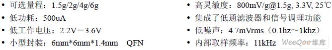 2.2 三軸MEMS 加速度計(jì): 本系統(tǒng)中的加速度計(jì)選用了 Freescale 的MMA7260Q 單片三軸加速度計(jì)。MMA7260Q 是一個(gè)低成本的電容式微機(jī)械加速度計(jì),其內(nèi)部具有信號(hào)調(diào)整、單極低通濾波器、溫度補(bǔ)償 等功能,其量程可以通過(guò)編程選擇1.5g/2g/4g/6g 之一。其主要特點(diǎn)如下: