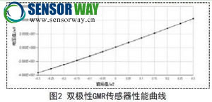 用于線性磁場測量的GMR傳感器應具有良好的線性度,可測量正反兩個方向的磁場,因此,在測試芯片的選擇上可選擇雙極性的GMR傳感器直接進行測試或選擇單極性的GMR傳感器對其進行偏置處理,將其零點抬高。