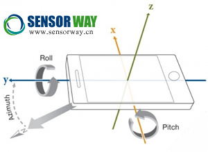 說到這里,也許有人會(huì)說,這個(gè)方向感應(yīng)器不是跟之前說的那個(gè)重力感應(yīng)器一樣嗎?其實(shí)對(duì)于方向感應(yīng)器來說,叫它應(yīng)用角速度傳感器更加合適,因?yàn)閷?duì)于方向傳感器來說,它還能感應(yīng)到水平面上的方位角、旋轉(zhuǎn)角和傾斜角。