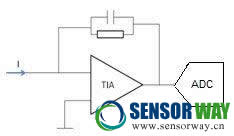 該傳感器需要使用TIA(Trans Impedance Amplifier)將電流信號(hào)轉(zhuǎn)成電壓信號(hào),再進(jìn)行模數(shù)轉(zhuǎn)換。由于信號(hào)的輸出電流較小,需要選用Ib(偏置電流<10pA)較小的精密運(yùn)算放大器。