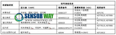 表1: 信號(hào)調(diào)理要求VS氣體傳感器類型