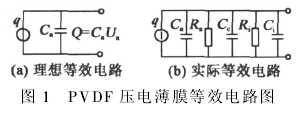 當(dāng)PVDF壓電薄膜被加載外力時(shí),它的上下兩個(gè)表面會產(chǎn)生極性相反、大小相等的電荷,可以把它看成是二極板上聚集異性電荷,中間為絕緣體的電容器。當(dāng)PVDF壓電薄膜受力后,輸出電荷與外力間的關(guān)系為