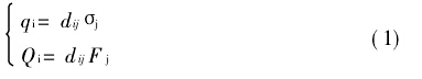 式中,qi為薄膜單位面積輸出的電荷;Qj為薄膜承受的應(yīng)力;Fj為薄膜承受的外力;Qi為薄膜總的輸出電荷;dij為薄膜的壓電應(yīng)變常數(shù)。