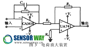 (1)與PVDF壓電薄膜傳感器阻抗匹配,把高阻抗輸入變?yōu)榈妥杩馆敵觥?br/> (2)將微弱電荷轉(zhuǎn)換成電壓信號并放大。由于PVDF壓電薄膜在受力作用下產(chǎn)生的電荷易通過放電回路泄露,產(chǎn)生測量誤差。因此,為了減少測量誤差,在設(shè)計(jì)電荷放大裝置時(shí),必須提高測量回路的時(shí)間常數(shù)。提高放電時(shí)間常數(shù)有增加回路電容和提高