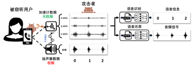 “加速度傳感器是目前智能手機中最常見的一種嵌入式傳感器,主要用于探測手機本身的移動,常見的應用場景包括移動檢測、步數(shù)統(tǒng)計、游戲控制等!比慰嬖V記者,它之所以能被用來監(jiān)聽電話,主要是由于智能手機本身的物理結構,“由于聲音信號是一種由震動產生的可以通過一些介質進行傳播的聲波,因此手機揚聲器發(fā)出的聲音會引起手機的震動,而加速度傳感器可以準確感知到這些震動,因此攻擊者可以通過它來捕捉聲音信號引起的手機震動進而推斷出其中所包含的敏感信息。”