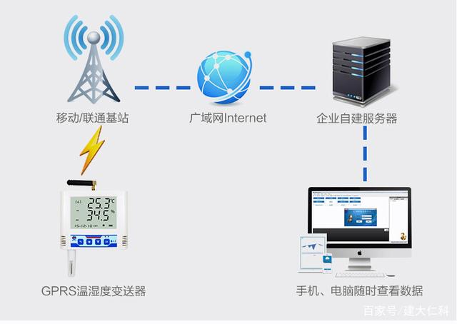 基于GPRS傳輸?shù)臏貪穸葌鞲衅鳎恍枰粡堃苿?dòng)或聯(lián)通的SIM卡,就可以通過網(wǎng)絡(luò)基站將采集的溫濕度數(shù)據(jù)上傳到服務(wù)器,GPRS通訊月流量小于30M。