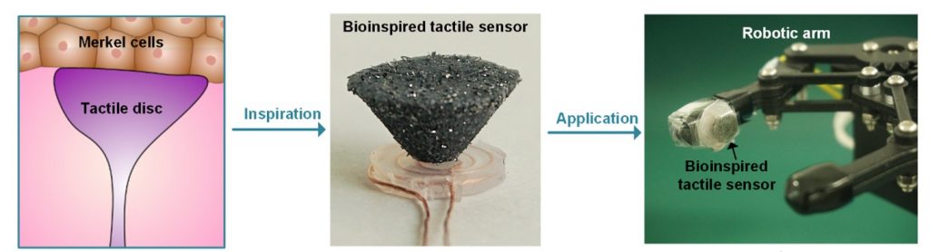 蘇斌教授及其同事通過設(shè)計(jì)和制造不需要任何外部電池的柔性,柔軟的觸覺傳感器,就可以解決這個(gè)問題。您可能會(huì)問這怎么可能?這款新設(shè)備的設(shè)計(jì)借鑒了自然,以我們自己的皮膚為靈感。