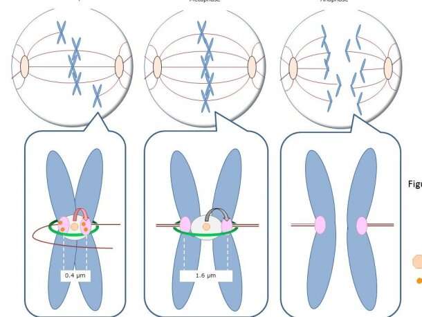 為防止此類染色體異常,細胞利用其張力傳感器精確控制染色體向新生細胞的分布,該傳感器定位復(fù)制的染色體的中心區(qū)域,稱為著絲粒,并檢測所附著的微管是否正在正確施加力。線粒體,著絲粒處的蛋白質(zhì)復(fù)合物。