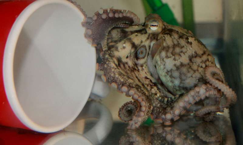 接觸杯子的章魚。圖片來源:Lena van Giesen
