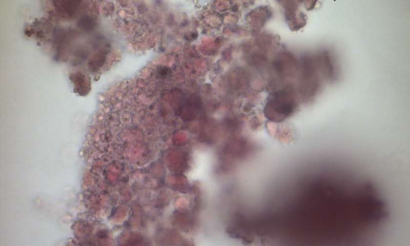 在與變質(zhì)的牛奶氣體反應(yīng)之前,在顯微鏡下涂覆納米顆粒(頂部),“聞”下面變質(zhì)的牛奶后具有相同的納米顆粒。