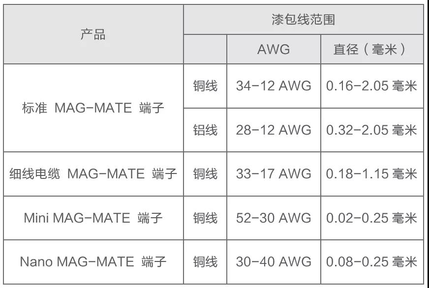 在全系列的標準MAG-MATE絕緣刺破壓接(IDC)端子基礎(chǔ)上新增的新型Nano MAG-MATE端子“小”出新高,適配于30-40 AWG(直徑0.08-0.25 mm)的單線或雙線端接銅漆包線,可以提供清潔、可靠、經(jīng)濟高效的解決方案,非常適合小型電機、步進電機或小型線圈應(yīng)用。