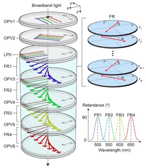 P-OPV對光的響應(yīng)根據(jù)光的偏振而變化,而延遲器則根據(jù)其偏振態(tài)以確定性的方式分散光。利用這種架構(gòu),該傳感器可以檢測設(shè)備中足夠小以適合智能手機的兩種類型的光。