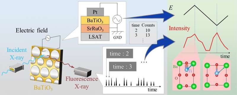 因此,該團(tuán)隊(duì)將X射線吸收光譜(XAS)與時(shí)間分辨方法結(jié)合在一起。XAS涉及X射線與原子的深核電子而不是其外部(或價(jià))電子的相互作用。該相互作用的測(cè)量允許描述材料的精細(xì)結(jié)構(gòu)。時(shí)間分辨方法涉及使用該技術(shù)在極短的時(shí)間尺度上研究材料中的動(dòng)態(tài)變化,在極短的時(shí)間尺度上會(huì)發(fā)生諸如鐵電極化反轉(zhuǎn)之類的現(xiàn)象。它使研究人員能夠檢測(cè)電場(chǎng)下光譜和電子狀態(tài)的最小變化。這兩種技術(shù)的結(jié)合是首次在鈦酸鋇上進(jìn)行的。