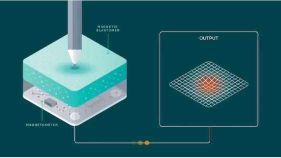 根據(jù)該出版物,當(dāng)這種材料變形時,它會導(dǎo)致其磁場發(fā)生變化,附近的磁力計可以察覺到這種變化。然后,系統(tǒng)使用基于人工智能的技術(shù)將這些數(shù)據(jù)解釋為相關(guān)信息,例如接觸位置和施加的力。