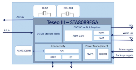 Teseo VIC3DA 芯片組的框圖。圖片由意法半導(dǎo)體提供