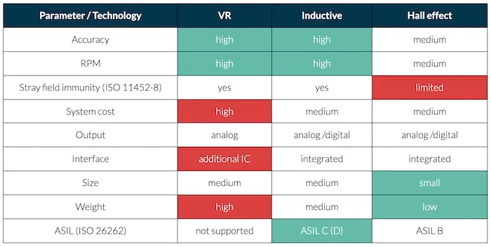 旋轉變壓器技術的比較。圖片由Melexis 提供