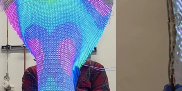 為了將電子紡織品帶入智能家居,劍橋大學(xué)的研究人員通過將有源電子設(shè)備編織到纖維中制造了一個 46 英寸的紡織品顯示器。
