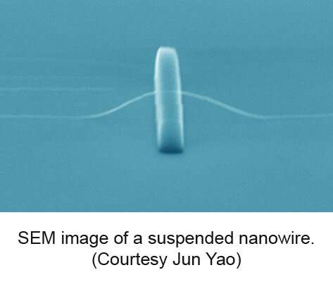 懸浮納米線的 SEM(掃描電子顯微鏡)圖像。來(lái)源:姚俊