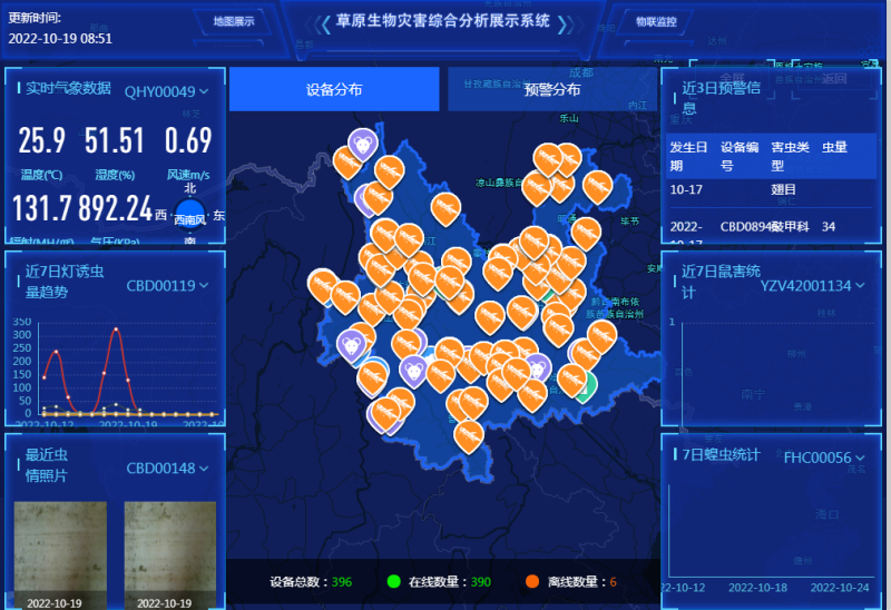 根據(jù)云南省第三次國(guó)土資源調(diào)查,云南草地面積1984.33萬畝,主要分布在迪慶、曲靖、紅河、昆明、昭通等5個(gè)州市。云南省草原生物災(zāi)害監(jiān)測(cè)預(yù)警體系試運(yùn)行3個(gè)月以來,設(shè)備運(yùn)行正常。截至記者發(fā)稿,共監(jiān)測(cè)識(shí)別昆蟲88種,數(shù)量達(dá)2092萬頭,為完成今年180萬畝草原有害生物防治目標(biāo)任務(wù),提供了防治決策管理科學(xué)依據(jù),對(duì)增強(qiáng)云南生物災(zāi)害防控水平、維護(hù)草原生物多樣性、保障林草資源安全意義重大。