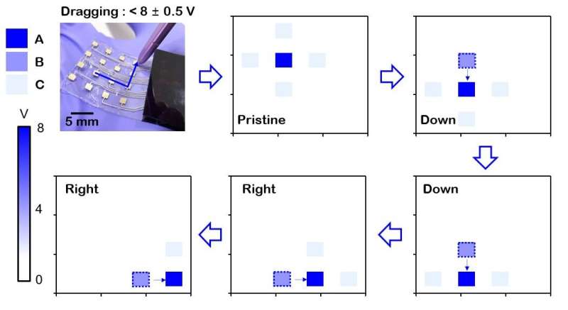 柔性基板上的可穿戴式觸摸傳感器。圖片來(lái)源:韓國(guó)科學(xué)技術(shù)學(xué)院(KIST)