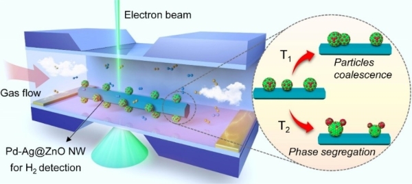 圖1.采用MEMS芯片氣相原位TEM技術揭示氫氣傳感器失效機制的示意圖
