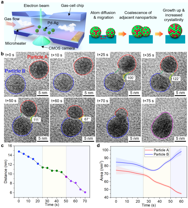 圖3.原位TEM實驗實時記錄合金催化劑的融合過程