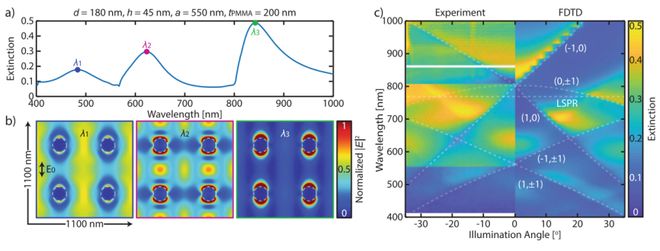 鑒于此次設(shè)計(jì)方法的普遍性,加之納米顆粒陣列窄光譜等離子表面晶格共振的特性,接下來會(huì)應(yīng)用到不同光學(xué)或電子光學(xué)領(lǐng)域中去。