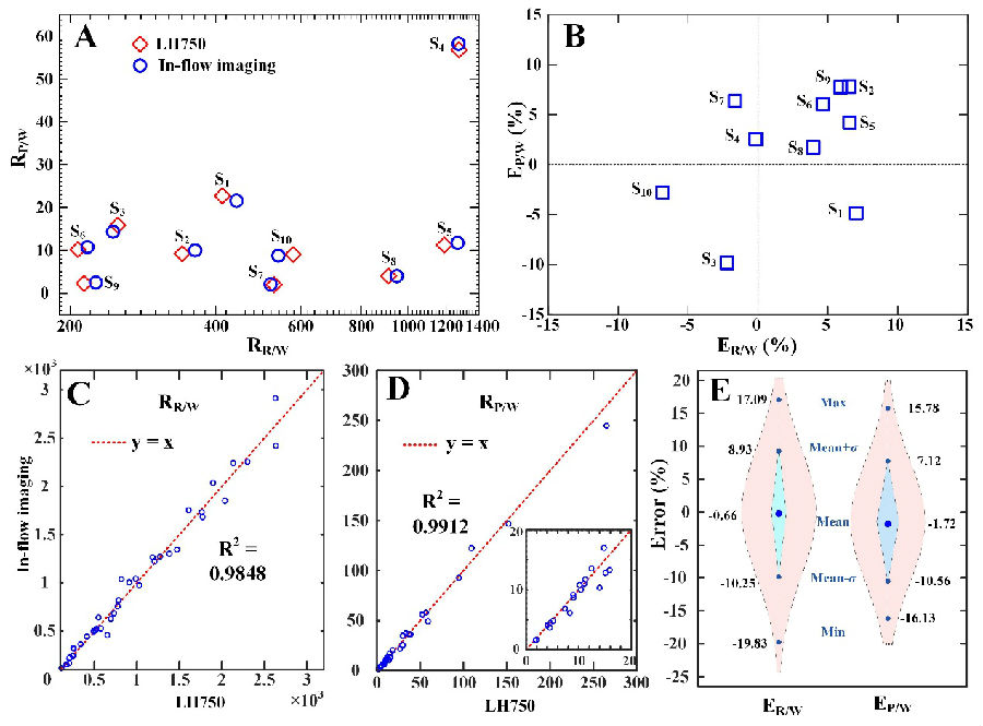 在微流控芯片方面,團隊利用交錯擠壓結構實現(xiàn)細胞單層直線排列,提出基于縮/擴結構的單細胞定點翻轉,仿真分析了寬流速范圍內(出口平均流速50~2000 μm/s)芯片功能的有效性及穩(wěn)定性。在單細胞識別、計數(shù)方面,團隊基于軌跡跟蹤的多角度形態(tài)學關聯(lián)分析方法,成功將單細胞識別平均精度由0.8622提升至0.9934,可有效剔除細胞重疊、聚團導致的誤識、漏識。在系統(tǒng)性能層面,實現(xiàn)測試通量約為8000個細胞/分鐘,樣本濃度一致性極限時長可達1小時。在臨床樣本檢測靈敏度及特異性方面,該研究開展了10例雙盲測試及75例臨床患者的大規(guī)模樣本分析驗證。結果表明,POCT設備與臨床用檢驗設備(血球儀)的細胞子類計數(shù)結果高度一致(R2>0.98),充分驗證了該方法的可行性及POCT設備在血細胞濃度異,F(xiàn)場診斷方面的應用潛力。