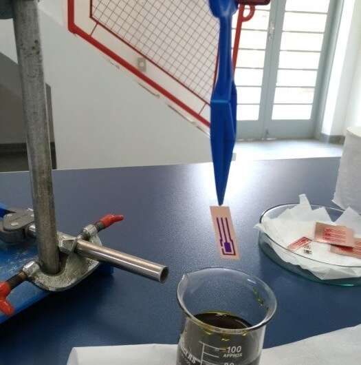 “在發(fā)明完成之前,我們沒有發(fā)現(xiàn)關(guān)于柔性銅傳感器用于檢測汗液中有毒金屬的報告,但前部搜索可能會發(fā)現(xiàn)類似的東西,可能會阻止專利申請,”該文章的另一位合著者,IQSC-USP的研究員Marcelo L. Calegaro說。
