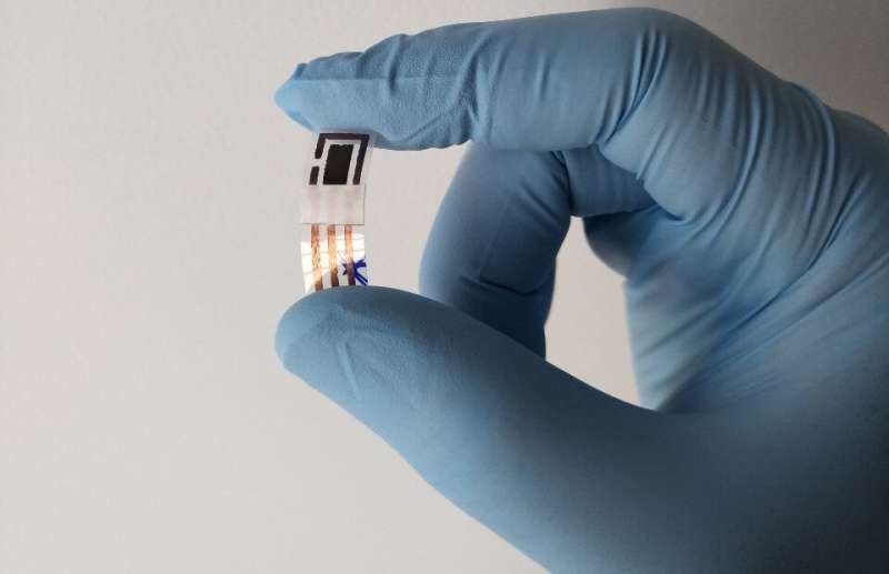 由普通材料廉價制成的柔性銅傳感器:導電銅膠帶、透明薄膜片、紙質(zhì)標簽、指甲油、電路制造解決方案和丙酮。學分:安德森·德坎波斯
