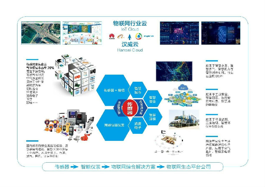 多年以來,漢威科技的技術(shù)骨干們從將國(guó)外的先進(jìn)技術(shù)進(jìn)行拆解、學(xué)習(xí)的基礎(chǔ)上進(jìn)行創(chuàng)新、調(diào)整出發(fā),到從單一傳感器到全品類傳感器的獨(dú)立開發(fā)與制造,再到將產(chǎn)業(yè)鏈延長(zhǎng)至下游,實(shí)現(xiàn)氣體檢測(cè)儀器儀表的產(chǎn)品全鏈路布局。漢威科技又把握住市場(chǎng)機(jī)遇與時(shí)代脈搏,入局發(fā)展物聯(lián)網(wǎng),目前已擁有城市生命線監(jiān)測(cè)預(yù)警平臺(tái)、智慧安全、智慧環(huán)保、智慧燃?xì)、智慧水?wù)、智慧消防、居家智能與健康等一系列成熟的物聯(lián)網(wǎng)解決方案,廣泛應(yīng)用于工業(yè)安全、環(huán)境監(jiān)測(cè)、燃?xì)、供排水、消防、交通、熱力、危化品監(jiān)管、綜合管廊、居家健康等各個(gè)領(lǐng)域。