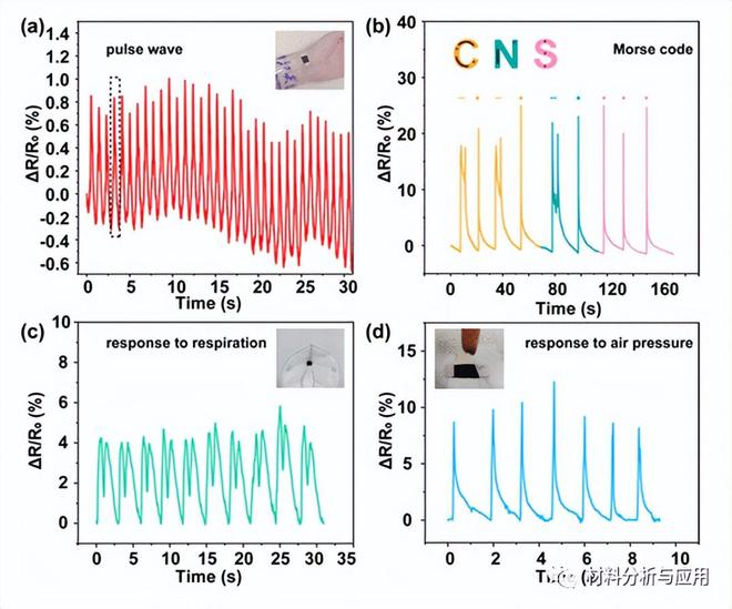 總之,DIW方法已被用于實現基于石墨烯的柔性傳感器,其GSCA用于可穿戴和氣流監(jiān)測。研究證明,GSCA是精確監(jiān)測脈搏、呼吸等。傳感器還可以根據一次刺激下的峰值數區(qū)分瞬態(tài)壓力和穩(wěn)壓。最后,DIW打印的CAGS已被證明能夠識別氣流耦合劑應用的氣流強度和方向。