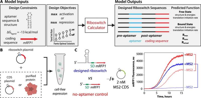 “過(guò)去設(shè)計(jì)這種核糖開(kāi)關(guān)傳感器的努力在很大程度上依賴(lài)于試錯(cuò)實(shí)驗(yàn),例如,構(gòu)建和表征大型隨機(jī)文庫(kù)以識(shí)別有效的核糖開(kāi)關(guān)變體 - 遺傳藍(lán)圖和適配體,”Salis說(shuō)。“結(jié)合熱力學(xué)建模和計(jì)算優(yōu)化,我們合理地設(shè)計(jì)了新的核糖開(kāi)關(guān),這些核糖開(kāi)關(guān)被預(yù)測(cè)為良好的蛋白質(zhì)傳感器,然后我們對(duì)其進(jìn)行了測(cè)試。我們的設(shè)計(jì)算法稱(chēng)為Riboswitch計(jì)算器。