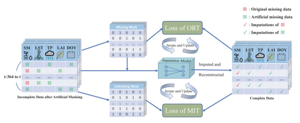 地表土壤水分監(jiān)測對氣象預(yù)報(bào)、水文研究和氣候變化分析等至關(guān)重要。然而,由于現(xiàn)有的微波傳感器觀測能力以及衛(wèi)星軌道覆蓋和植被覆蓋等因素的影響,微波遙感土壤水分產(chǎn)品存在大面積的空值區(qū)域,限制了此類產(chǎn)品的應(yīng)用。為了解決這一問題,中國科學(xué)院成都山地災(zāi)害與環(huán)境研究所研究員趙偉團(tuán)隊(duì)提出了基于深度學(xué)習(xí)模型的分層數(shù)據(jù)重建方法。這一方法填補(bǔ)了歐洲航天局(ESA)氣候變化倡議(CCI)土壤水分產(chǎn)品的空間空白。