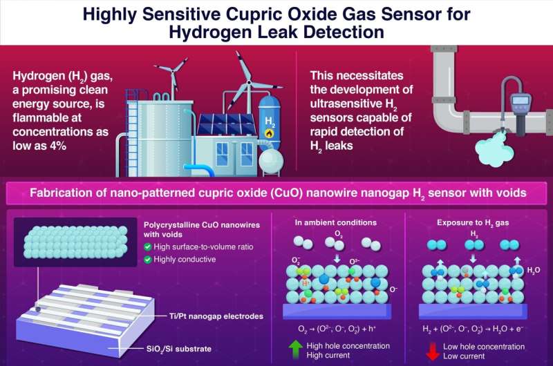 該傳感器由納米圖案多晶 CuO NW 制成,這些 CuO NW 對(duì)氫氣高度敏感,放置在硅 (SiO2/Si) 襯底。