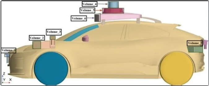 為前傳感器、前側(cè)傳感器、車頂傳感器和后側(cè)傳感器設(shè)置了變形控制體,這些傳感器對空氣動力阻力系數(shù)有顯著影響。通過調(diào)整這些控制體上的控制點,可以改變傳感器的形狀。 圖片來源:王逸平