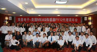 2011年5月9日-13日,精量電子(深圳)有限公司(美國(guó)MEAS傳感器)2012財(cái)年代理商工作會(huì)在浙江臺(tái)州召開,包括臺(tái)灣在內(nèi)的大中華區(qū)二十余家代理商派出代表參加了此次會(huì)議。精量電子(MEAS)最近兩年在資本運(yùn)作市場(chǎng)上連續(xù)出拳,接連收購(gòu)了一些具有核心技術(shù)的傳感器知名品牌。由于中國(guó)區(qū)域業(yè)績(jī)?cè)鲩L(zhǎng)突出,精量電子(MEAS)對(duì)這次代理商大會(huì)非常重視。不僅由亞太區(qū)銷售總監(jiān)Mr. Park帶領(lǐng)各產(chǎn)線負(fù)責(zé)人及區(qū)域銷售經(jīng)理悉數(shù)到場(chǎng),精量電子美國(guó)總部也派出全球測(cè)試測(cè)量市場(chǎng)總監(jiān)、加速度傳感器產(chǎn)品總經(jīng)理Anthony Chu參加了此次會(huì)議。