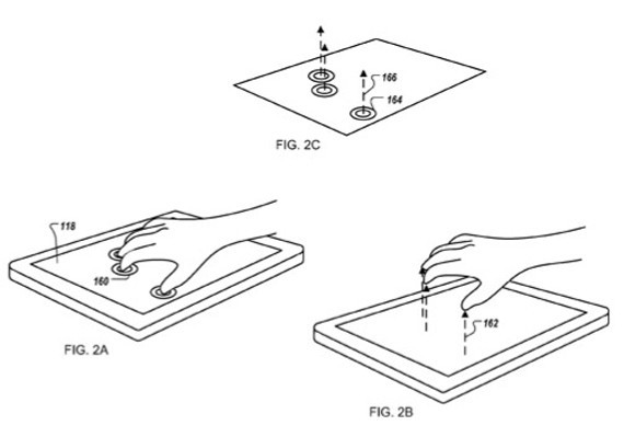 這項專利涉及兩個較為晦澀的概念。第一個概念涉及利用近距離傳感器和觸摸屏以3D形式記錄手勢。比如,用戶用三根手指在觸摸屏上擺出三角形狀,然后“縮放”形成金字塔造型,以用于CAD應用。