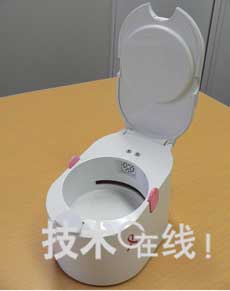 圖:SEEMS試制的乳腺癌傳感器實機模型。這個試制品展示了把含有體臭的墊片放入溝槽,蓋上蓋子進行測定的模式,無法實際工作。該公司只開發(fā)內(nèi)部的傳感器技術(shù),最終產(chǎn)品的開發(fā)希望委托給產(chǎn)品廠商。