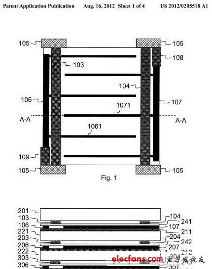 美國專利商標局(US Patent&Trademark Office)2012年8月16日公開了芬蘭諾基亞2011年2月申請、采用了石墨烯的光傳感器專利文件。該文件提出了(1)光吸收層和(2)前置放大器用FET通道層采用兩層石墨烯的光傳感器。