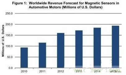 最新預(yù)計(jì)硅磁傳感器在汽車(chē)電機(jī)中的應(yīng)用率將急增。由于能夠改善汽車(chē)安全性、便利性和燃油效率,硅磁傳感器在汽車(chē)電機(jī)中的應(yīng)用將快速增長(zhǎng),該市場(chǎng)的銷(xiāo)售額將在2012年增長(zhǎng)近40%。2012年汽車(chē)電機(jī)領(lǐng)域的磁傳感器銷(xiāo)售額將達(dá)到1.603億美元,延續(xù)最近三年的穩(wěn)健增長(zhǎng)勢(shì)頭。盡管2012年以后銷(xiāo)售額增長(zhǎng)速度將會(huì)放緩到一位數(shù),但2010-2015年的復(fù)合年度增長(zhǎng)率仍將達(dá)到16%。到2015年,汽車(chē)電機(jī)領(lǐng)域的磁傳感器銷(xiāo)售額將上升到1.936億美元。