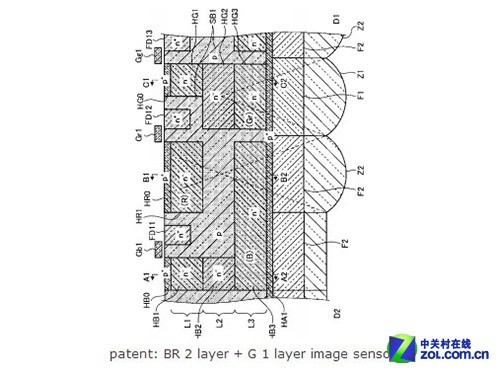 因而可以理解為這是一款混合式的傳感器設計,一層為傳統(tǒng)拜耳傳感器設計的紅藍像素層,一層則為foveon的綠色層,也就是X3+馬賽克設計。這樣的好處是將最影響傳感器感光度的綠色層獨立出來,從而提高綠色的采集效率,因而新傳感器的感光性能應該更好。我們期待這項專利能夠盡早實用化,相信屆時相機的高感性能將得到進一步提升。